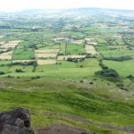 So singing, we stared at the view, one of the finest in County Derry – the sunlit lowlands around Dungiven striped with little traditional fields, the north Sperrins rolling away like sombre waves in the south-west, Lough Foyle lying north-west like a steel tongue, and tabular Muckish and conical Errigal standing out in Donegal on the western skyline.