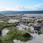 Wind, sun and towering clouds over Connemara, Galway Bay a choppy mass of white horses, and Inisheer the shape of a pale grey currach upturned in the sea, with bursts of white spray demarcating the shoreline as we butted out aboard the Doolin ferry. It’s always a shock to remember that the three iron-grey Aran Islands, with their cracked and flower-bespattered limestone, belong politically to granite-hearted Co. Galway, rather than Co. Clare of whose Burren region they are insular outcrops.