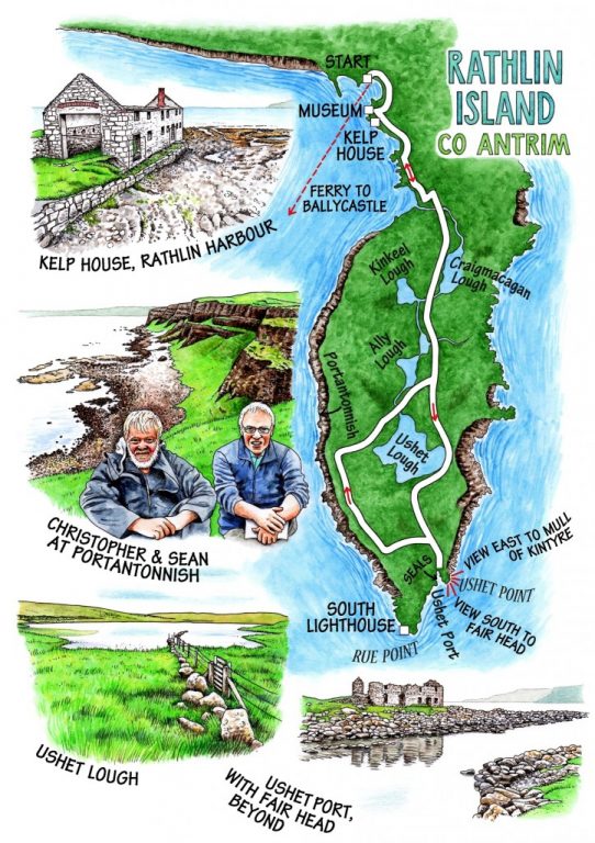 ‘It’s a wonderful thing,’ mused Sean Mullan, ‘how the walking leads to the talking.’ This is such an incontrovertible truth that Sean, a much-travelled Derryman come to anchor in rugged north Donegal, has named his out-and-about-on-foot touring business ‘Walking & Talking In Ireland’. Come Irish, English, Germans or Americans – a day or two in the countryside with Sean, an ex-teacher gifted in drawing out his walking companions, and all tongues are magically loosened. That’s what Jane and I found, too, on our exploration of Rathlin Island’s road less travelled, the south-going peninsula that leads to moody and beautiful Ushet Port.
