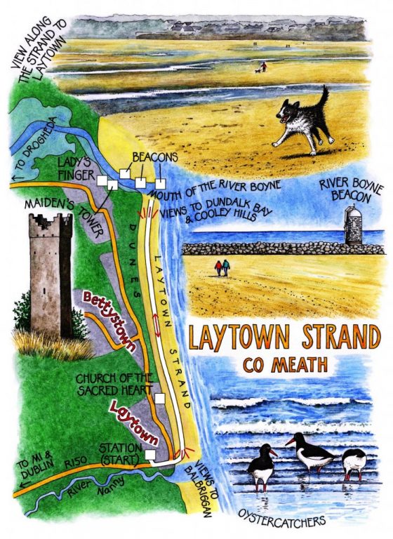 WALK DIRECTIONS: From Laytown station, turn left along the road to the seafront; left along Laytown Strand to mouth of River Boyne, and return.