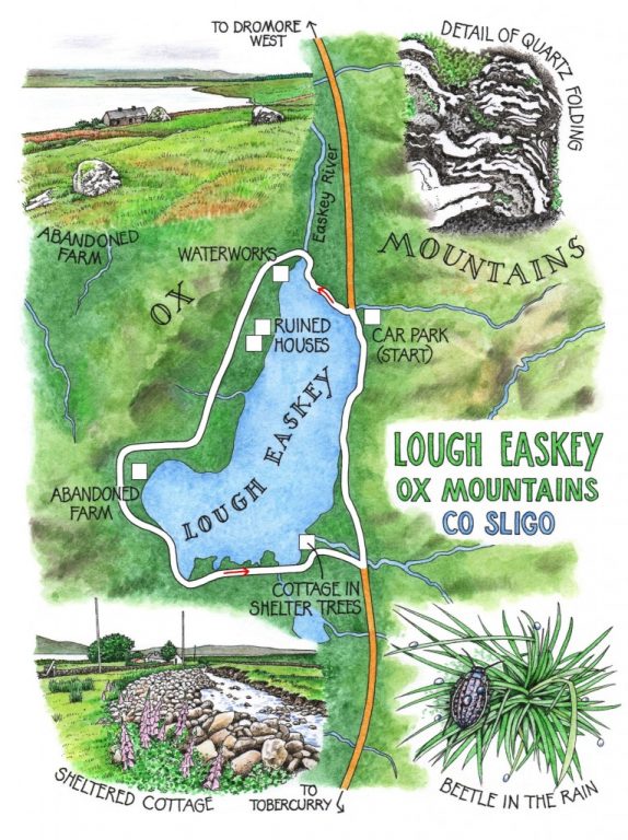 The first time I went walking in the Ox Mountains, I was (almost) literally blasted off them by one of the coldest springtime winds I’ve ever encountered. And when I’d last tried to walk a circuit of Lough Easkey, in the heart of the range, it had rained and blown so hard that I’d actually had to cry off, the only such occasion – so far, touch wood – in over 100 walks for the Irish Independent. So as I left a sunny north Sligo coast and headed inland, there was a bit of a sense of déja vu when I came over the crest of the mountain road and found rain clouds drawn down like a close-fitting cap of grey wool over the hills around a wind-ruffled Lough Easkey.