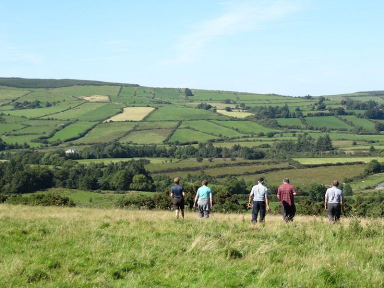 Walks don’t all have to be long. Sometimes it’s great to have a proper yomp o’er hill and dale, and sometimes you just want a post-prandial stravage like Red Hugh’s Loop, through a couple of fields and up a slope or two. On a beautiful mid-Tipperary day of blue sky and strong sun I crossed the gentle ridge of Knockmehill, ‘the bald hill’. A strange name for a place so thickly grassed and so well thatched with ancient gorse bushes.